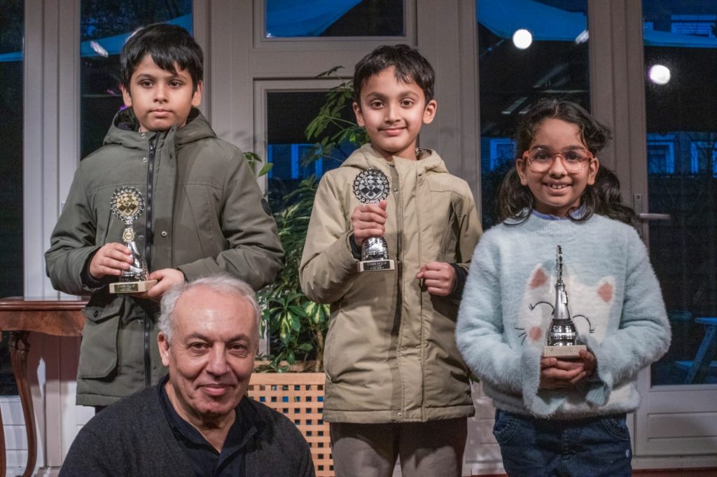 Groep A was tot het einde toe spannend. Samaira speelde sterk en stond voor de laatste ronde op 5 punten, met een grote kans om ongedeeld eerste te worden. In de laatste ronde verloor ze echter haar partij tegen Leo, maar dat bleek niks uit te maken! Door haar hoge weerstandpunten eindigde ze alsnog eerste met 5 punten. Roman en Mehdi eindigden ook met 5 punten, op respectievelijk de tweede en derde plaats. Leo en Thibaud volgden daar kort achter met beide 4 punten.