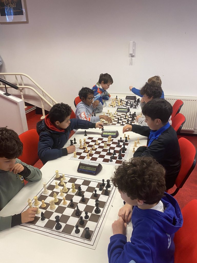 Afgelopen zondag vond de Chessleague weer plaats in De Batjanzaal. Dit keer waren de spelers onderverdeeld in drie groepen. Iedereen speelde enorm fanatiek, maar gelukkig ook enorm sportief. De kinderen hielden zich netjes aan de regels, en hielpen elkaar als ze er niet uitkwamen met de klokken (of vroegen ons natuurlijk om hulp). Verder waren de ouders ook behulpzaam en schaakten de kinderen in opperste concentratie!